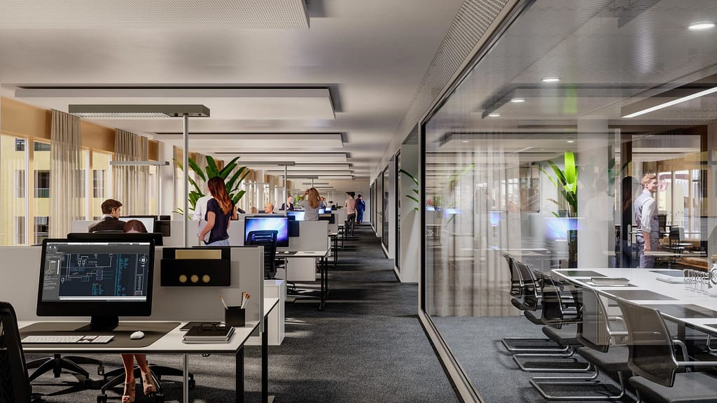 Sur les 20’000 m2 de surfaces administratives, seules 2’000 m2 sont encore disponibles à la location, dès 2023, pour les esprits les plus entrepreneurs. Bureaux labellisés Minergie-P, vastes open-spaces : l’avant-garde architecturale invite ici à la créativité. Modulables à souhait, les surfaces sont traversantes et n’ont de limite que l’imagination.
